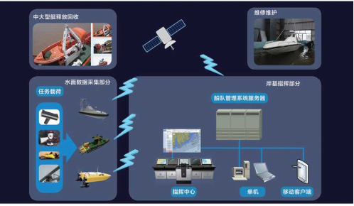 無(wú)人艇系統(tǒng)主要包括水面無(wú)人艇測(cè)繪單元系統(tǒng)、船隊(duì)管理系統(tǒng)、自組網(wǎng)通信系統(tǒng)、無(wú)人自主航行控制/測(cè)繪一體化軟件系統(tǒng)和自動(dòng)布放回收系統(tǒng)。